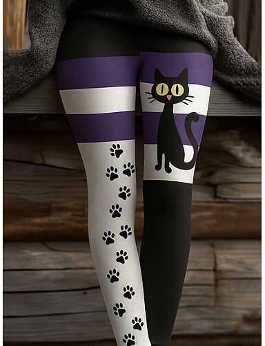 Femmes Leggings Vacances ancien Mode Longueur complète Taille haute Graphique Animal Chat Impression Chaleur Thermique Doux Respirant Élastique Quotidien Extérieur Vacances Noir Marron Gris Printemps