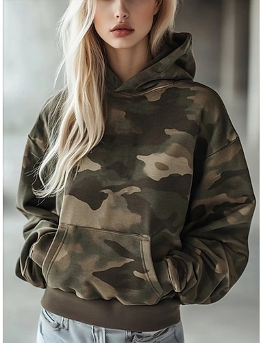 Femmes Sweat à capuche Graphique Camouflage ancien Occasionnel manche longue À capuche Hauts Réguliers Occasionnel Vert Printemps Automne Hiver