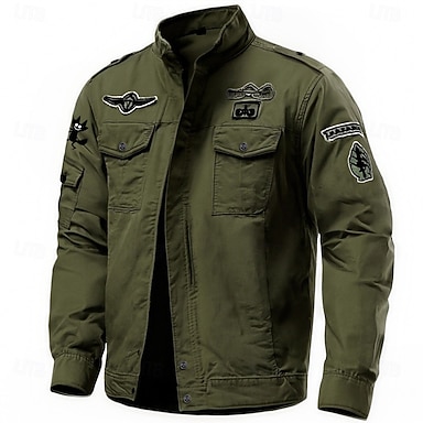Homme Graphique Etoile Veste Cargo Coupe-vent Veste militaire Pratique Occasionnel Extérieur Camping & Randonnée Broderie Poches Latérales Fermeture Éclair Frontale Automne Hiver Col montant manche