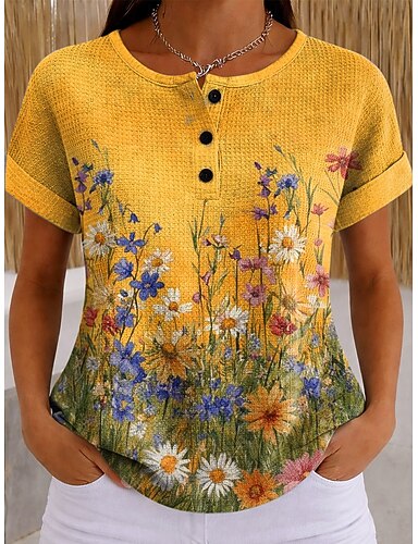 Femmes Féminin Chemise boutonnée Chemise Décontractée Occasionnel Tee-shirt Abricot Boutons Imprimé Manche Courte Élégant Bohème Vacances Col de chemise Été
