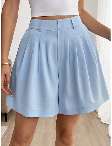 Femmes Chinos Shorts Élégant Vacances Mode Court Taille haute Couleur Unie Avec Poches Ceinture Élastique Confortable Confort Doux Micro-Élastique Quotidien Extérieur Rue Bleu Été Printemps Automne