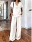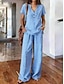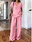 Femmes Mélange de lin Graphique Uni Occasionnel Manche Courte Col en V Hauts Réguliers Quotidien Week-end Bleu Blanche Rose Claire Orange Kaki Été Printemps
