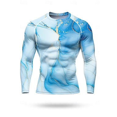 Homme Dégradé de couleur T-shirt de compression T-shirt de course Printemps Automne Impression 3D manche longue Séchage Rapide Compression Power Flex Évacuation de l'Humidité Respirant Entraînement
