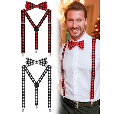 Ensemble de bretelles réglables et nœud papillon à carreaux de Noël pour hommes, style décontracté et formel, parfait pour les fêtes de fin d'année et les cadeaux