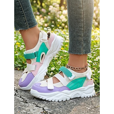 Sandales compensées épaisses pour femmes - chaussures de style papa sportives en maille colorée, idéales pour la marche, style années 2000 &style de rue
