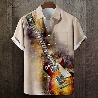 Homme Guitare Instrument de musique Chemise Chemise d'été Chemise Boutonnée Manche Courte Vintage Rétro Festival de Musique Fête Été Printemps Col Rabattu Impression 3D Une poche avant Chemise en lin