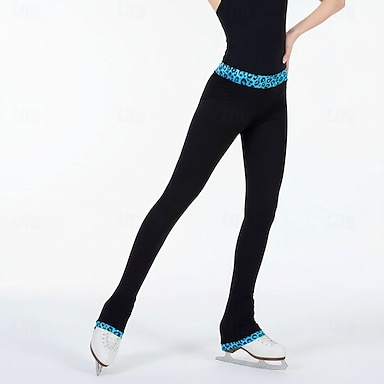Pantalon de patinage artistique pour femmes et filles, noir, rose, bleu, extensible, pour l'entraînement et la compétition, chaud et thermique, orné de cristaux et de strass.