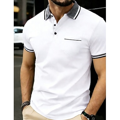 Homme Polo Chemise de golf Occasionnel Rue Revers Manche Courte Basique Moderne Bloc de Couleur Avec Poches Boutons Été Printemps Coupe régulière Noir Blanche Jaune Rouge Bordeaux bleu marine Orange