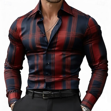 Homme Géométrique Grille / Carreaux Chemise Chemise en satin Chemise habillée manche longue Vêtement décontracté de travaile Vacances Tenue Quotidienne Été Printemps Automne Col Rabattu Impression 3D