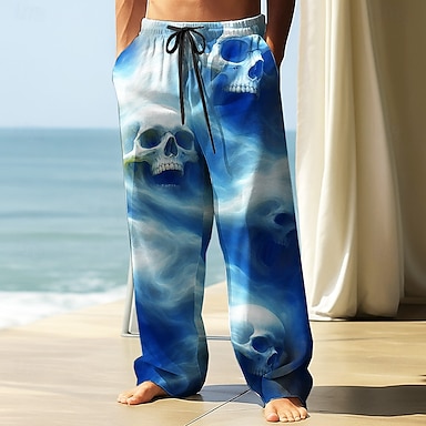 Pantalons pour hommes Pantalons amples Pantalons décontractés Taille élastique avec cordon de serrage Pantalons semblables à du lin avec poches Costumes de crâne Plein Droit Mode de rue style