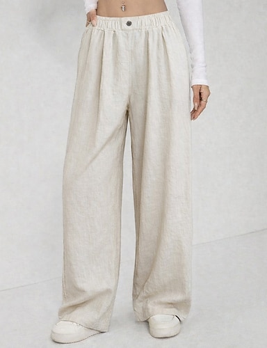 Femmes Faux coton lin Jambe large Chinos Pantalon d'été Vacances Mode Streetwear Longueur complète Taille haute Uni Avec Poches Ceinture Élastique Confortable Doux Respirant Élastique Extérieur
