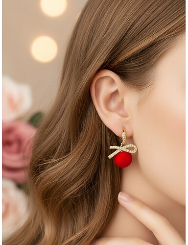 Boucles d'oreilles de Noël pour femmes avec nœud en strass et goutte de perle, bijoux de vacances festifs pour fête, mariage et cadeaux