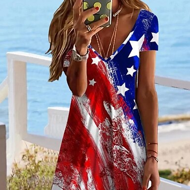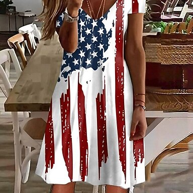 Femmes Maillot de cyclisme Graphique Géométrique Jour de l'Indépendance Manche Courte Cyclisme Maillot Top avec 3 poches arrière Écran solaire Résistant aux UV Séchage Rapide Bandes réfléchissantes