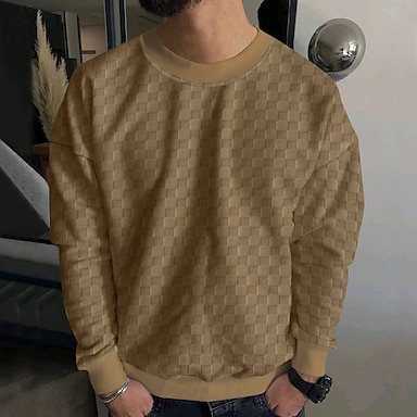 Homme Sweat-shirt Noir Blanche Kaki Gris Col ras du cou Jacquard A côtes Texturé Texture tricotée Sport & Loisir Quotidien Fête Polyester Texturé Streetwear Basique Occasionnel Automne Hiver Vêtement