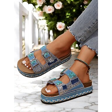 Sandales à plateforme perlées pour femmes – sandales à enfiler de style bohème pour la plage, les festivals et les sorties décontractées