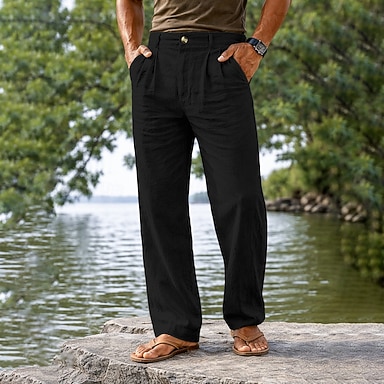 Homme Pantalons en Lin Pantalons Dress Pants works Pantalon d'été Avec Poches Boutons Jambe Droite Uni Confort Respirant Longueur complète Extérieur Occasionnel Quotidien Mode Style Classique Noir