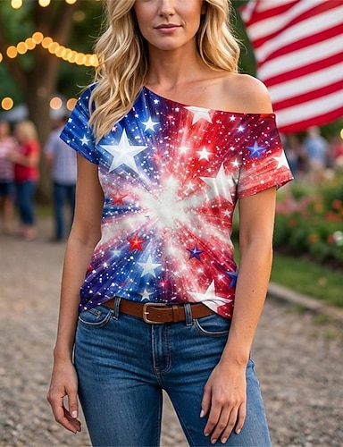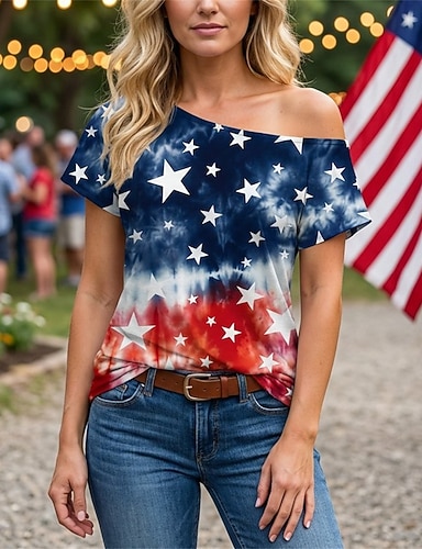 Journée de l'Indépendance Robe Patriote pour Femme Robe Mini Robe Décontractée Élégante Quotidienne Ajustement Classique Drapeau Rouge Blanc et Bleu Manches Courtes Col Ronde Bleue Été