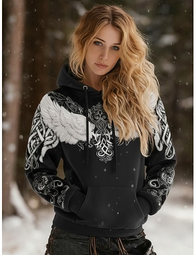 Femmes Sweat à capuche Patchwork Imprimé Poche Avant Graphique Géométrique Tribal ancien Occasionnel Boho manche longue À capuche Hauts Réguliers Rue Tenue Quotidienne Noir Blanche Hiver