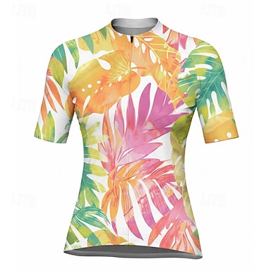 Femmes Maillot de cyclisme Fleurs tropicales Palmier Manche Courte Cyclisme Maillot Top avec 3 poches arrière Séchage Rapide Évacuation de l'Humidité Respirant Des sports Jaune Vêtement Tenue