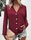 Femmes Chemise Couleur Unie Uni Élégant Bohème Actif manche longue Col en V Hauts Réguliers Quotidien Vêtements de rue Soirée Blanche Vert Claire Vin Kaki Bleu clair Été Printemps
