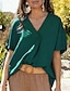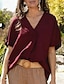 Femmes Chemise d'été Chemise Décontractée Chemisier Couleur Unie Élégant Basique Occasionnel Demi Manches Col en V Hauts Réguliers Quotidien Bleu Noir Rouge Vert Beige Été Printemps Automne