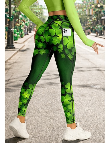 Saint Patrick Femmes leggings de pilates Pantalons de fitness Jambières de gymnastique Poches Droit de timbre Poches Latérales Pilates Salle de sport Entraînement en salle Collants Leggings Bas