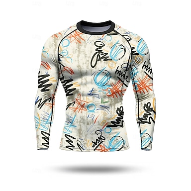 Homme Abstrait Graffiti T-shirt de compression T-shirt de course Printemps Automne Impression 3D manche longue Séchage Rapide Compression Power Flex Évacuation de l'Humidité Respirant Entraînement en