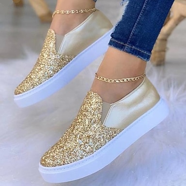 Baskets à enfiler à paillettes dorées pour femmes – chaussures à plateforme décontractées scintillantes avec tige en similicuir pour un usage quotidien, les fêtes et le style urbain