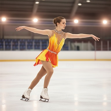 Robe de patinage artistique Femmes Patinage Robe Rouge jaune. Patchwork Dos Nu Élastique Entraînement Compétition Tenue de Patinage Classique cristal pailleté Sans manches Patinage sur glace Patinage