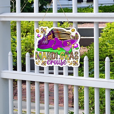 Lot de 2 panneaux de porte pour croisière Mardi Gras, plaque en bois à suspendre pour la porte de votre cabine de bateau de croisière, décoration pour les vacances de Mardi Gras, articles de fête pour