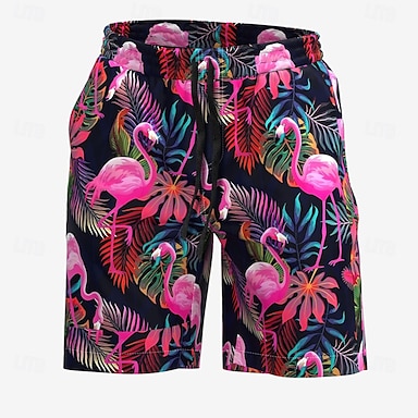 Homme Flamant rose Plantes Tropicales Maillots de bain Shorts de bain Shorts de Surf Taille Moyenne Streetwear Hawaïen Occasionnel Fête Vacances à la Plage Avec Poches Cordon de serrage Taille