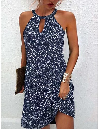 Femmes Mini Robe Robe trapèze Vacances Occasionnel Extérieur Sortir Coupe régulière Fleuri Géométrique Sans manches Col Halter Bleu Blanche Rouge Violet Été Printemps
