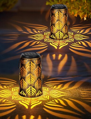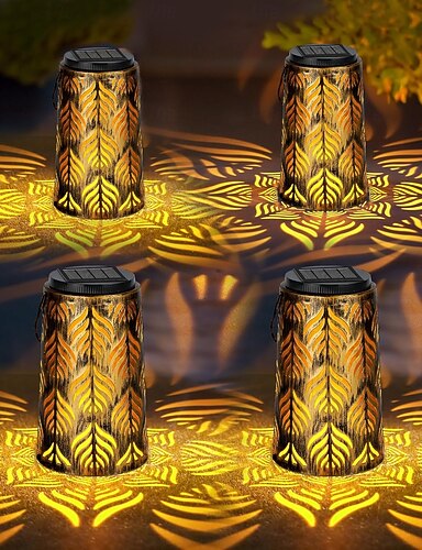 Lot de 4 lampes solaires d'extérieur en métal creux, projecteur mandala, étanches IP44, pour clôture, escalier, allée de jardin, cour, aménagement paysager de villa.