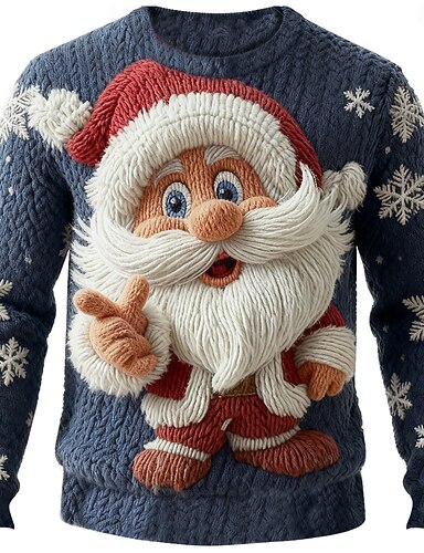 Pull de Noël moche Homme Père Noël Imprimé Pull Tricots Col Rond Occasionnel Vacances Quotidien Festival Garder au chaud manche longue Printemps Automne Hiver Noir A Noir B Noir