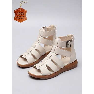 Sandales gladiateur beiges pour femmes – sandales décontractées élégantes en cuir à plusieurs brides, chaussures de marche décontractées pour les voyages et les tenues d'été &vêtements de tous les