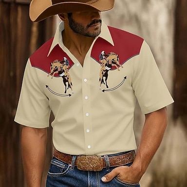 Homme Cowboy Blocage de couleurs Chemise Chemise Western Chemise de cow-boy Manche Courte Vintage Rétro Extérieur Vacances Vêtements de travail Été Printemps Col Rabattu Impression 3D Chemise en lin
