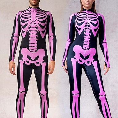Carnaval 2026 Crâne Squelette Crâne de sucre Combinaisons Costumes de Groupe pour Couples d'Halloween Combinaison Intégrale Déguisement effrayant Adultes Enfant Tous Halloween Carnaval Le jour des