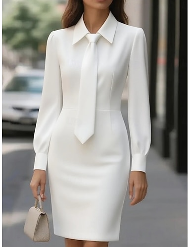 Femmes Mini Robe Robe moulante Robes semi-formelles Bureau Coupe régulière Uni manche longue Col de chemise Noir Printemps Automne Hiver