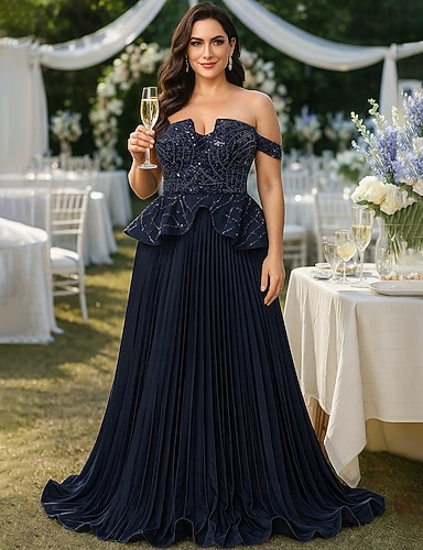 Ligne A Longueur au sol Robe de Bal Broderie perlée Robe de Soirée Robe de Mère de Mariée Sans manches Épaules Dénudées Élégant ancien Grande taille Soirée Formelle Fête de mariage Anniversaire avec