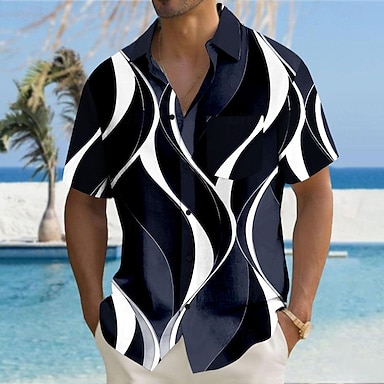 Homme Vintage Indien Bohème Chemise Chemise hawaïenne Chemise Boutonnée Manche Courte Hawaïen Vacances Fête Tenue de plage Été Printemps Col Rabattu Impression 3D chemises à col Bleu de minuit