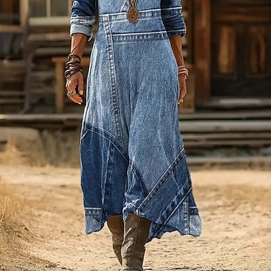 Femmes Robe Maxi Robe bohème Robe Vintage Robe Décontractée ancien Quotidien Extérieur Vacances Coupe Ample Fleuri manche longue Col en V Vert Printemps Automne