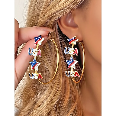 États-Unis 250e Anniversaire Boucles d'Oreilles Créoles Thématiques USA en Alliage pour Femme Étoiles rouges blanches et bleues Parfaites pour les États-Unis la Journée d'Indépendance et le Port