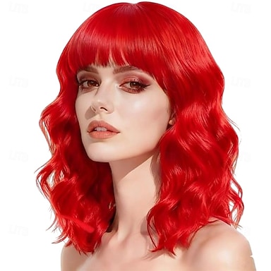 perruque avec frange douce courte ondulée bob perruques pour femmes synthétique longueur d'épaule femmes perruques bouclées pour costumes de carnaval cosplay quotidien