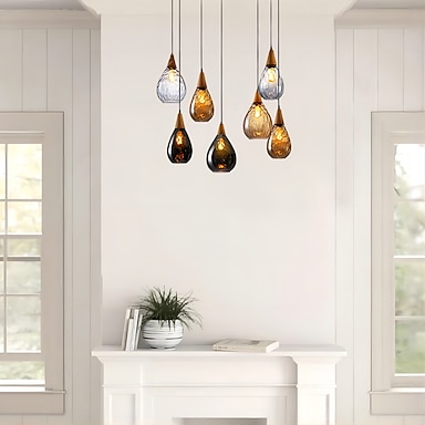 luminaires en verre teinté, luminaires suspendus ambrés, îlot de cuisine, luminaires suspendus en verre martelé, abat-jour en verre 110-240v