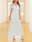 Robe de mariée invitée à un mariage longueur sol A-Line Robes formelles Robe de soirée Robe de la mère de la mariée À manches courtes Col rond Élégante Vintage Fête Dentelle avec dentelle