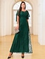 Sirène Trompette Longueur au sol Robe d'invité de mariage Robe de Cérémonie Robe de soirée Robe de Mère de Mariée Demi Manches Col ras du cou Élégant robe demoiselle d honneur Fête de fiançailles