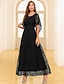 Ligne A Traîne Courte Robe d'invité de mariage Robe de Cérémonie Robe Évasée Robe de Mère de Mariée Manche 3/4 Bijoux Robe Noire Fente Haute robe demoiselle d honneur Automne Satin avec Perlage