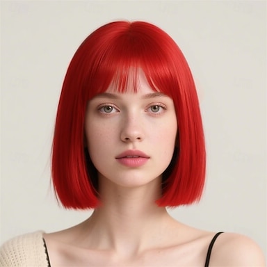 perruque bob avec frange perruque courte et droite pour femme perruque synthétique résistante à la chaleur d'aspect naturel pour les filles utilisation quotidienne de fête d'halloween cosplay