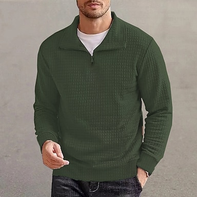 Homme Sweat-shirt Sweat-shirt gaufré Pull Sweat-shirt quart de fermeture éclair Noir Blanche Vin bleu marine Vert Col montant Uni Sport & Loisir Quotidien Fête Streetwear Occasionnel Athlétique