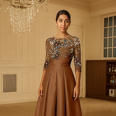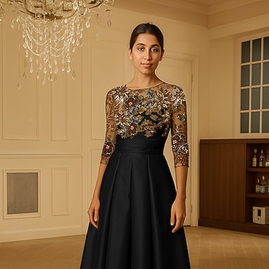Ligne A Longueur cheville Longueur thé Robe de Soirée Robe de Cocktail Robe d'invité de mariage Robes de Cocktail Élégant Scintillant Manche 3/4 Col Bateau Fête de jardin Formel Poche Taffetas